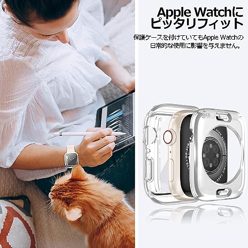【2in1デザインで全面保護】本製品は、Apple Watchの画面、エッジ、ボタンから背面まで360度保護する、Apple Watchケース/フィルム一体型の保護ケース+背面保護ケースの2つの合体設計です。9H硬度の強化ガラスフィルムは、キズに強く耐久性があり、高解像度で高透過率、タッチもスムーズです。PC素材の保護ケースは、落下やキズなどからあなたのApple Watchを保護し、新品の状態を長持ちさせます。