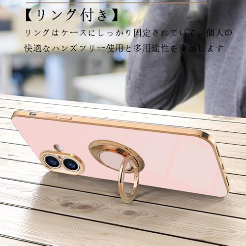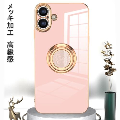 JOOBOY スマホケース 対応 iPhone 17 ケース リング付き メッキ加工 レンズ保護 tpu ソフト ストラップホール付き 耐衝撃 スリム おしゃれ 携帯カバー アイフォン17 用 ケース (ピンク)