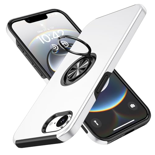 iPhone 16E 用ケース リング付き TPU 耐衝撃 スマホケース 車載対応ホルダー対応 スタンド機能 軽量 薄型 アイフォン16e 用カバー カメラ保護 衝撃吸収 指紋防止 黄変防止 ストラップホール 一体型 四隅滑り止め 手触り良い 保護カバー 銀 SJ15.305