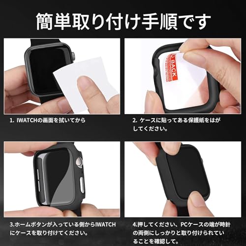 ★全面保護:アップルウォッチ保護ケースには耐久性優れたPC素材を採 。この保護ケースはハイビジョン液晶ガラスを採し、保護フィルムの部分に硬度9Hの強化ガラスを採してからのフルカバータイプの防水ケースとなっています。LCDスクリーンの擦り傷のことを防ぐことができます。 最大限に本体を保護できます。設備を最大限に保護します。透明度が高いため、快適本体を操作できます。