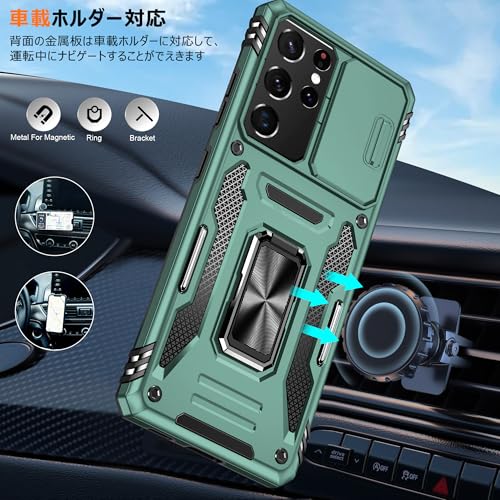 PNEWQNE 対応Galaxy S21 Ultra 5G 用のケース リング付き 衝撃吸収 SC-52B SCG11 ケース 耐衝撃 スタンド機能 米軍MIL規格 ギャラクシー s21 ultra 5g 用のカバー 全面保護 360°回転 滑り落ちにくい 人気 おしゃれ 携帯カバー ライトグリーン WY88-189
