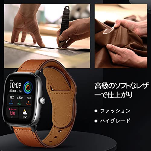 HeeNia 20MM レザーバンド Amazfit T-Rex 3 Pro 44mm/Active 2 Square/Active 2/Active/GTR Mini/GTS 4/GTS 4 Mini/Bip 3/3 Pro 対応 バンド 革 ストラップ スポーツバンドGarmin vívomove Trend/Venu Sq 2 用 時計ベルト (ブラウン)