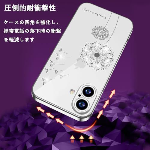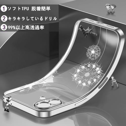YUYIB スマホケース 対応 iPhone17 クリアケース 透明 メッキ加工 キラキラ かわいい 花柄 tpu ソフトケース キャラクター 女性人気 薄型 おしゃれ 衝撃吸収 ブランド 対応 アイフォン17 携帯カバー (シルバー, iPhone17)