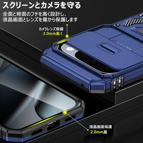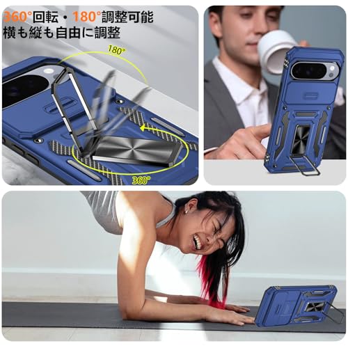PNEWQNE 対応 Google Pixel 10/10 Pro 用のケース リング付き 衝撃吸収 耐衝撃 スタンド機能 米軍MIL規格 グーグル ピクセル10/10 pro 用のケース 全面保護 360°回転 滑り落ちにくい 人気 おしゃれ 携帯カバー 青 WY100-20