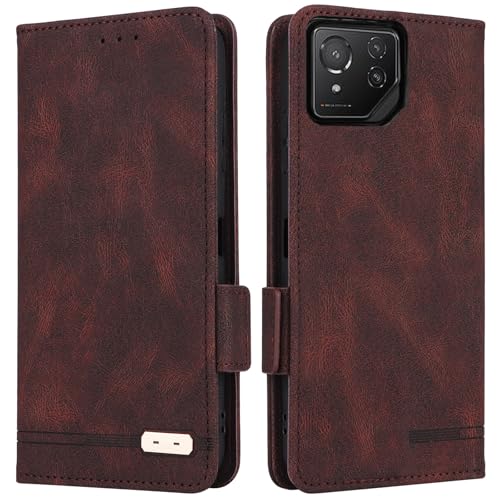 ASUS ROG Phone 8 / Phone 8 Pro/Phone 8 Pro Edition ケース 手帳型 【ストラップ 同梱】 適用 ROG Phone 8 PRO 手帳型 ROG8 スマホケース case Heofuixt スタンド カバー カード カード入れ ストラップ カードケース スマホケース ストライプ マグネット ケース 携帯ケース つや消し レトロ ダークブラウン