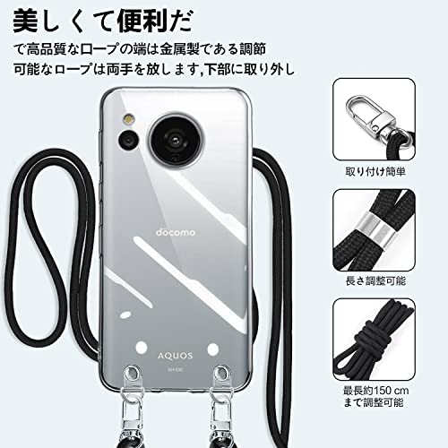 AQUOS Sense7 ケース クリア ショルダー AQUOS sense7 スマホケース SH-53C SHG10 ケース 肩掛け 斜めかけ 縄掛け ケース ストラップ付き スマホケース 透明 TPU AQUOS Sense7 スマホシ リコン カバー 薄型 軽量 耐衝撃 長さ調整可能 取り外し可能 指紋防止 紛失防止 (クリア)