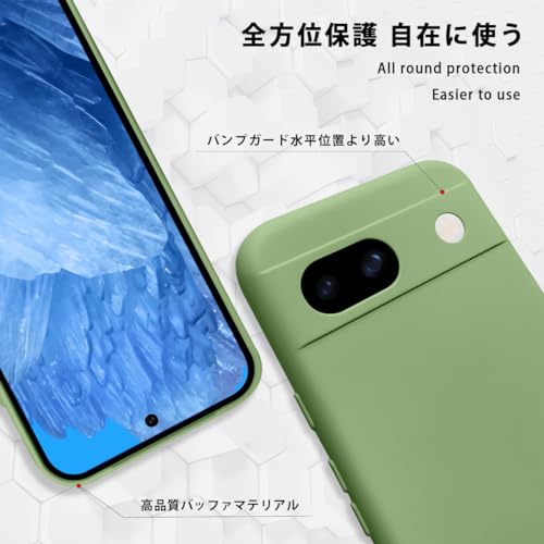【Majiyana】に適合する Google Pixel 8A ケース シリコン スリム 用の ピクセル 8a カバー 超薄型 衝撃吸収 軽量 米軍MIL規格 ワイヤレス充電 指紋防止 ストラップホール付き (サボテングリーン)