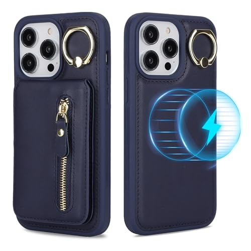 Havaya いphone14Pro Max ケース MagSafe 対応 iPhone 14 Pro Max ケース マグセーフ 分離式 リング付き 耐衝撃 カード収納 ファスナー ワイヤレス充電対応(6.7インチ対応)-ブルー