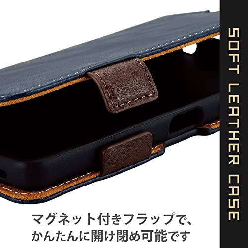 エレコム Xperia Ace III (SO-53C / SOG08) ケース カバー レザー 手帳型 マグネット付きフラップ ステッチ 耐衝撃 ストラップホール付 ネイビー PM-X223PLFYNV
