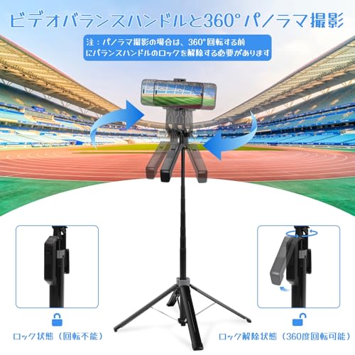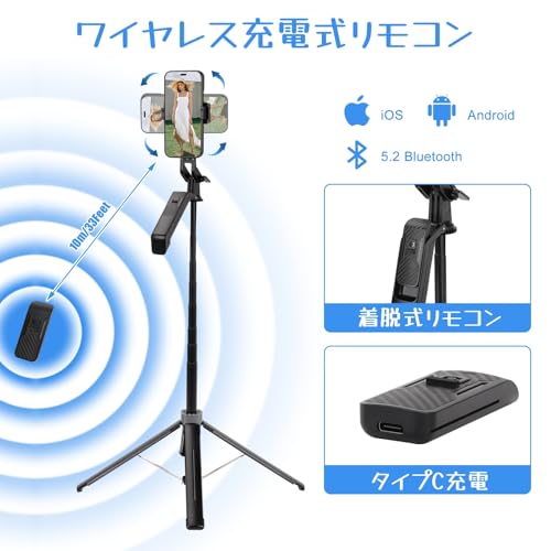 ワイヤレスリモコン:リモコン付き自撮り棒三脚を使えば、両手を自由に使って遠隔撮影が楽しめます。 最大32.8フィート/10メートルの距離で安定した接続を維持し、AndroidやiPhoneなどほとんどのスマートフォンと互換性があり、Type-C充電に対応しているため、バッテリーを交換する必要がありません。