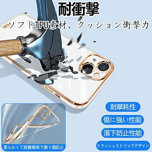 ONETIAOLONG に適合するiPhone14 Plus 用のケース クリア 透明 アイフォン14Plus 用のカバー スマホケース 全面保護 耐衝撃 TPU ソフト 薄型 メッキ加工 携帯ストラップ ストラップホール付き 落下防止(ホワイト)