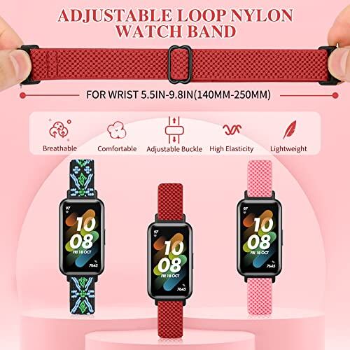 【調整しやすい】---ナイロンの弾性付きHuawei Band 7 バンドは「8」模様のリング調整器が付いています。あなたに適切な腕サイズに調整しやすくて、あなたの運動やレジャー活動の時に気軽に付けます。手を絞ったり緩すぎたりすることがありません。