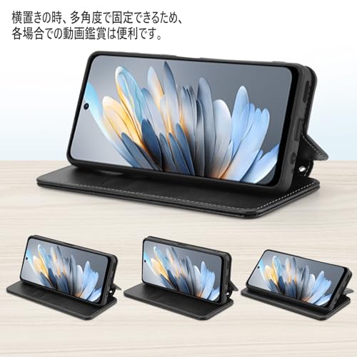 wangChuan ケース 適用nubia S 5Gケース 手帳型 wangChuan A403ZT スマホケース レザー カード収納 内蔵マグネット式(携帯ストラップ付き)ブラック