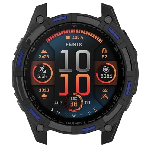 SHEAWA for Garminガーミン Fenix 8 51mm ケース カバー 保護ケース 互換品 TPUゴム 保護カバー 耐衝撃 アクセサリー (ブラック×ブルー)