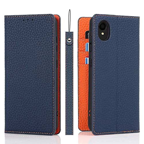 レザー サムスンギャラクシーA22 5G ケース 手帳型 本革 galaxy A22 5Gスマホケース SC-56B ギャラクシーA22 5G 携帯カバー SC-56B ケース 手帳型 携帯カバー galaxy A22 5G Jaorty 内蔵マグネットカードホルダ付き スタンド機能 超薄型 人気 おしゃれ-ネイビー