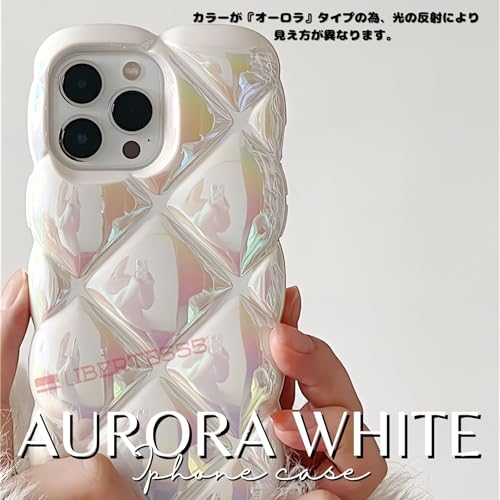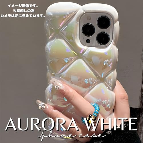 スマホケース ケース キルティング ぽこぽこ ギャル 女子高校生 韓国 コギャル 可愛い 11 12 13 14 15 16 plus pro max (オーロラホワイト,16 PLUS)