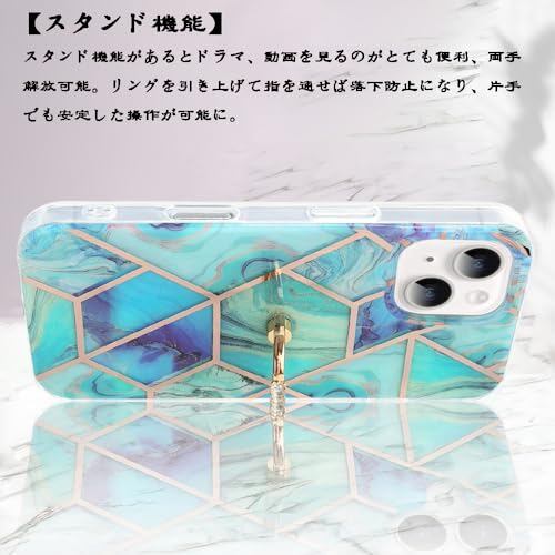 YUYIB スマホケース 対応 iPhone 15 ケース リング付き 大理石柄 メッキ加工 キラキラ かわいい キャラクター ディズニー 美しい おしゃれ 女性 人気保護カバー 薄型 軽量 アイフォン15 携帯電話かばー (グリーン, iPhone 15)