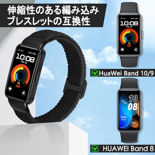 [enkic] 編み込みゴムバンド Huawei band 10 バンド対応 ソフトナイロン 調節可能なスポーツ交換バンド Huawei band 9/band 8 ブレスレット レディース メンズ