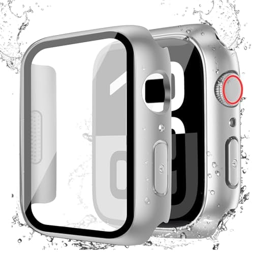 ATTKAI for アップルウォッチ カバー Series 10/9/8/7/6/5/4/SE2/SE for Apple Watch カバー 防水 一体型 PC素材 硬度9H強化ガラス 高透過率 指紋防止 超薄型 耐衝撃 全面保護 for Apple Watch ケース (45mm,シルバー)