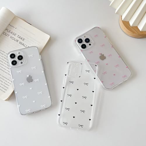 ZTOFERA iPhone 16 Pro用クリアケース かわいい蝶々結び いphone16pro ケース 透明 おしゃれ 人気 韓国 リボン ハート パターン スマホケース ソフトTPU バンパーケース 軽量 耐衝撃 アイフォン16 Pro 女性 携帯カバー (ホットピンク)