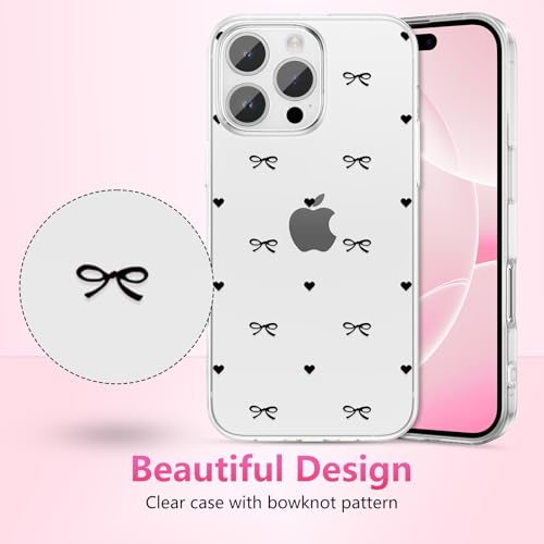 ZTOFERA iPhone 16 Pro Max用クリアケース かわいい蝶々結び いphone16pro max ケース 透明 おしゃれ 人気 韓国 リボン ハート パターン スマホケース ソフトTPU バンパーケース 軽量 耐衝撃 アイフォン16 Pro Max 女性 携帯カバー (ブラック)