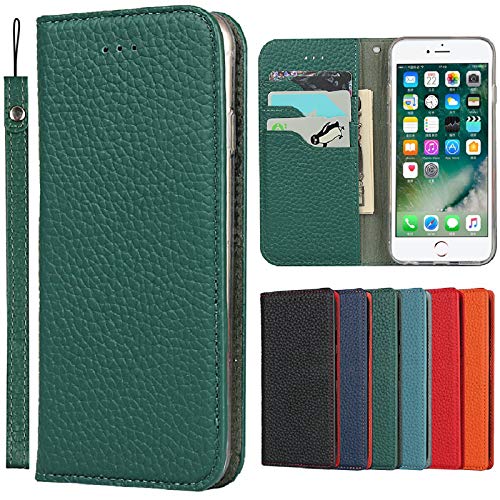 Jaorty Iphone 7 plus/8 plus と互換性のあるケース 手帳型 アイフォン 7 plus/8 plus 用のスマホケース 財布型 本革 肩掛け 斜めがけ おしゃれ ジッパー小銭入れ カード収納 横置き-ダークグリーン