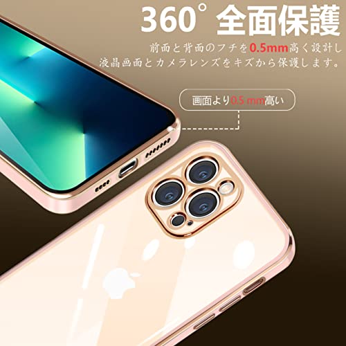 ONETIAOLONG に適合するiPhone13 Pro 用のケース クリア 透明 アイフォン13pro 用のカバー スマホケース 全面保護 耐衝撃 TPU ソフト 薄型 メッキ加工 ストラップホール付き 落下防止(ピンク)