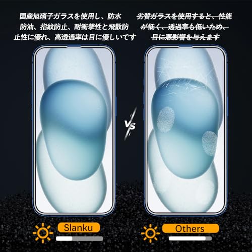 【360°覗き見防止 2枚】Slanku ガラスフィルム iphone 16 用 360°覗き見防止 国産旭硝子素材 プライバシー保護 硬度9H 極薄 耐衝撃 指紋防止 自動吸着 貼りやすい 飛散防止 iphone 16 対応 保護フィルム 覗き見防止【ガイド枠付き】