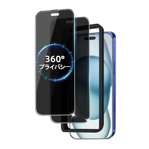 【対応機種】iPhone 16 に適応しています。360度覗き見防止フィルム*2、ガイド枠*1。(※スマートフォンで支払いを行う際は、画面を明るくした状態にしてください。)