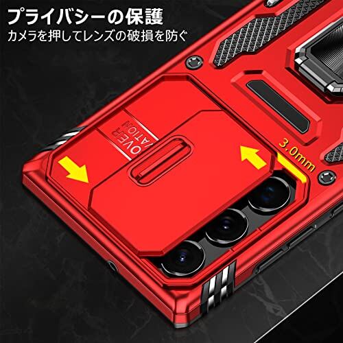 Galaxy S25 Ultra 用 ケース リング付き 衝撃吸収 耐衝撃 スタンド機能 米軍MIL規格 ギャラクシーs25ウルトラ 用ケース 全面保護 360°回転 滑り落ちにくい 人気 おしゃれ 携帯カバー 赤 WY95-111