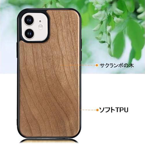 YUYIB スマホケース 対応 iPhone 11 ケース ハードケース 天然木目 木製 高級 ウッド 衝撃吸収 落下防止 防指紋 携帯カバー ソフトTPUパンバー+ハード木製パネル アイフォン11 カバー (サクランボの木, iPhone11)