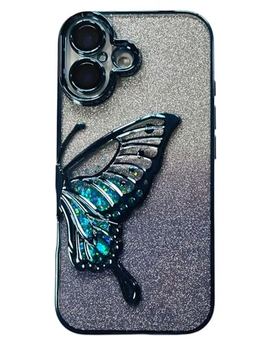 Jinrayplus 対応 アイフォン17 ケース 可愛い 3D 立体 趣味 美しい 蝶 韓国 おもしろ グラデーション フラッシュペーパ 女性 女の子 携帯ケース( iP17, 青 Blue )