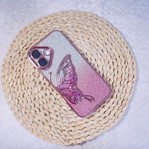 「Jinrayplus」 iPhone 16E ケース 対応 可愛い 3D 立体 趣味 美しい 蝶 韓国 おもしろ グラデーション フラッシュペーパ iPhoneカバー 女性 女の子 スマホケース ( iPhone16E, ピンク Pink )