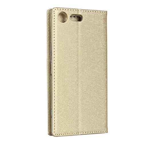 ソニー Xperia XZ Premium SO-04J 5.46型 ケース 手帳型 カバー エクスペリアxzプレミアム 手帳ケース Zouzt PUレザー製 ストラップ付き ベルトなし スタンド カード収納 マグネット 耐衝撃 滑り止め 5色 ゴールド