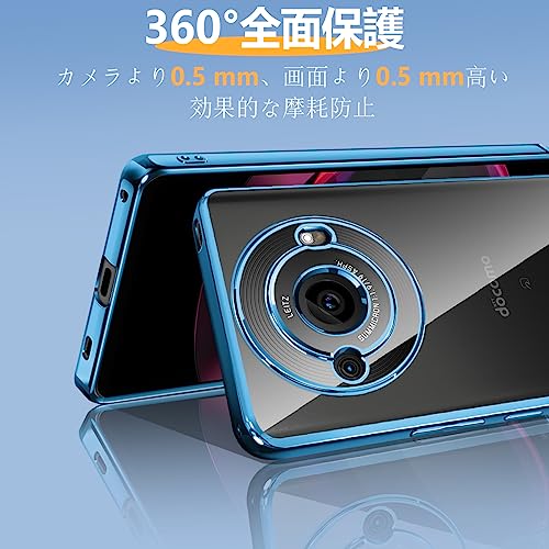 AQUOS R8 Pro ケース クリア 耐衝撃 アクオス R8 Pro SH-51D 透明 カバー 衝撃吸収 可愛い 柔らかい ワイヤレス充電 メッキ加工 薄型 ファッション 人気 滑り止め 黄ばみ防止 指紋防止 軽量 TPU 保護カバー(ブルー)