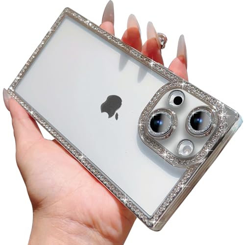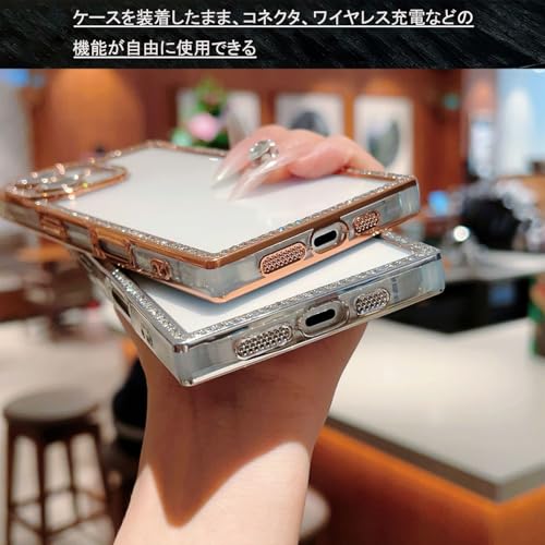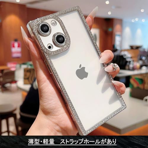 YUYIB スマホケース 対応 iPhone 14 Plus ケース クリア 透明 メッキ加工 ドリル きらきら ブリンブリン かわいい キャラクター 衝撃吸収 女性 人気 ストラップホールあり ワイヤレス充電対応 おしゃれ アイフォン14プラス 携帯カバー (シルバー, iPhone14 Plus)