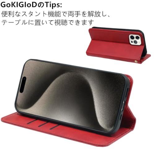 GOKIGIOD 適用 iPhone 12 / 12 pro 通用 ケース 手帳型 PUレザー ストラップ 同梱 カード収納 スタンド機能 耐衝撃 アイフォン12プロ スマホケース 手帳 いphone12 case カバー 財布型 内蔵マグネット 弱磁 ストラップホール 携帯カバー レトロ 真っ赤