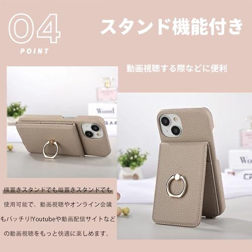 ピクセル8 用 ケース ショルダー 対応 背面 カード収納 リング付 for Pixel 8 用 グーグルピクセル8 落下防止 肩掛け 斜め掛 首掛け 可愛 かわいい おしゃれ スタンド機能 グレイッシュピンク