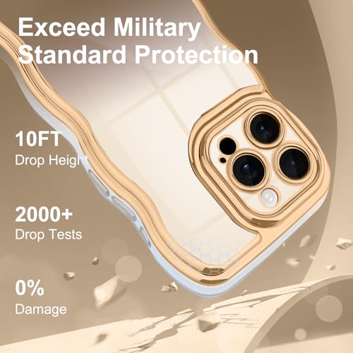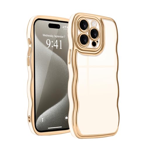 Teageo iPhone 13 Pro Max 用 ケース、韓国ウェーブデザイン メッキ加工ケース 衝撃吸収 落下防止 カメラ保護 カバー 対応 iPhone 13 Pro Max(ホワイト)
