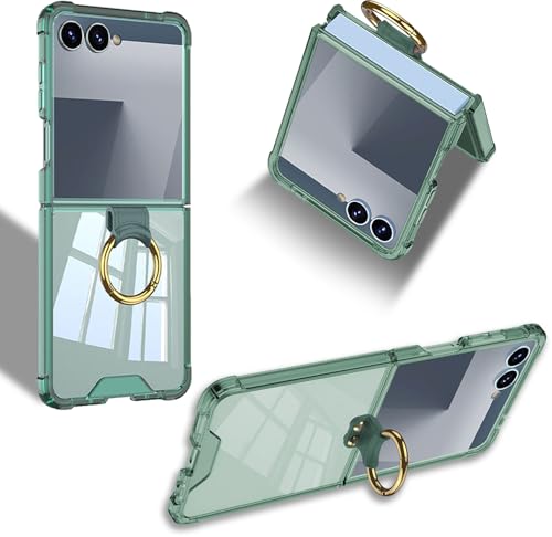 対応 Galaxy Z Flip7 ケース カバー Sediven リング付き スタンド機能 薄型 指紋防止 衝撃吸収 耐衝撃 落下防止 半透明 レンズ保護 軽量 全面保護カバー -グリーン