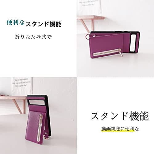 Google Pixel 7 ケース 高質レザー Pixel 7 カバー 肩掛け 首かけ 斜めがけ ショルダー ケース ミラーケース 便利 カードポケット スタンド機能 落ち着いた色 調節可能 軽量 多機能 縦置き ICカード収納 財布型 耐衝撃 携帯 鏡付き ケース スミレ
