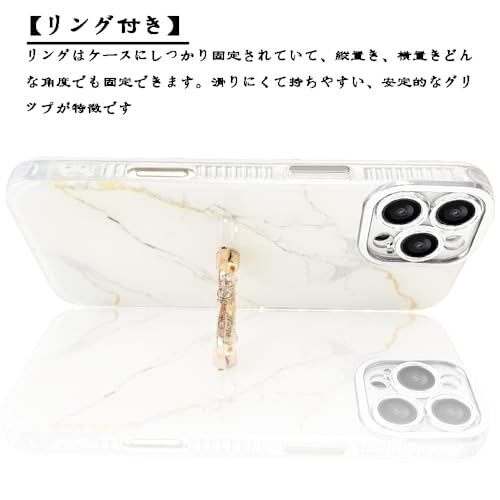 JOOBOY スマホケース 対応 iPhone 16 Pro Max ケース リング付き 大理石柄 レンズメッキ加工 かわいい キャラクター ディズニー 美しい おしゃれ 女性 人気 保護カバー 薄型 軽量 アイフォン16プロマックス 携帯電話かばー (ホワイト, iPhone16 Pro Max)