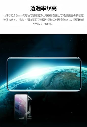 【装着感ゼロ】貼っていることを忘れるほどの薄さ0.15mmで、ケースにも干渉しません。ケースを取り付けてもガラスフィルムが剥がれません。しかしながら固くてきつすぎるケースを装着することは勧めできません。透過率は99%超えて高い透明度を維持していて、画像や映像を色鮮やかに映し、搭載された顔認証と画面内指紋センサーを邪魔しません。