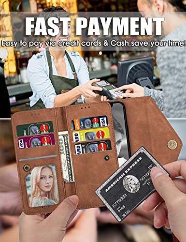 【多機能財布付き携帯ケース】7つのカードスロット、1つのファスナー袋、2つの現金袋、1つの斜め肩ベルト、強力な磁気ボタン、あなたの生活と仕事をより便利にします。プロのジッパー財布のデザインは、複数のクレジットカード、家族の写真と現金、財布と携帯ケースを持ち込み可能です。あなたのアウトドアの一日の需要を満たします。開式財布の保護カバーは携帯と日常の必需品を持ち歩きます。財布は必要ありません。すべての年齢の男性、女性、青少年に適しています。
