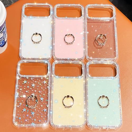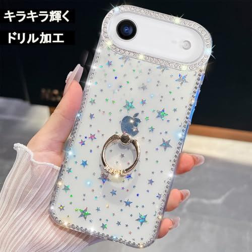 YUYIB 対応 iPhone Air/iPhone 17 Air クリアケース リング付き ドリル きらきら ブリンブリン かわいい スタンド機能 おしゃれ キャラクター 軽量 薄型 衝撃吸収 女性人気 ストラップ穴あり スマホケース アイフォンAir 透明カバー (クリア-スター)