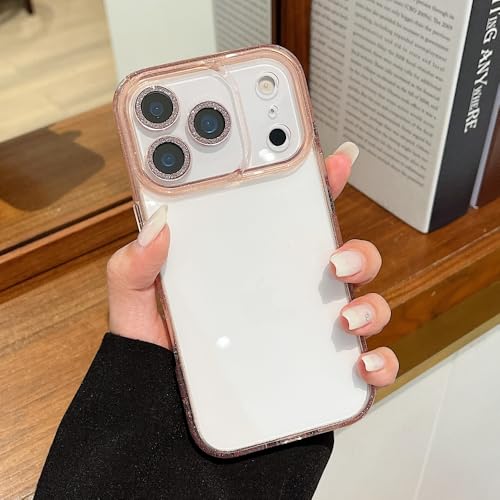 キラキラ iPhone 17 対応 ケース ラメ入り デコ 透明 クリア カバー ストラップホール付き きらきら 可愛い カメラ保護 アイフォン17 用 透明ケース レディース 女性,ピンク