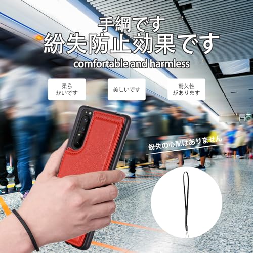 【OULO1】Xperia 1 III/SO-51B/SOG03/A101SO 用 ケース レザー カード収納 スマホケース 耐衝撃 軽量 スタンド機能 薄い 背面 IC カード入れ 手帳型 財布型 カバー(レッド)エクスペリア1 第3世代 ソニーxperia1 3 Red