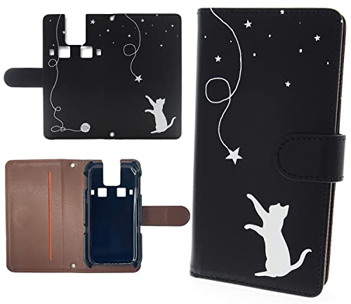 キッズケータイ SH-03M ケース ネコ 手帳型 黒色 スマホケース ブラック レザー製 カバー カメラ穴搭載 ネコ シルエット 猫柄 シンプルスタイル dccomo ドコモ SH03M-dcB-001