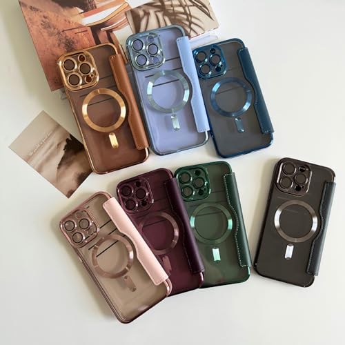 CeleBerry iphone 17 ケース 手帳型 透明 薄型 クリア magsafe カード マグセーフ対応 レンズ保護一体型 おしゃれ アイフォン17 カバー ブルー 青 iPhoneケース 携帯ケース クリアケース いphone17 ケース
