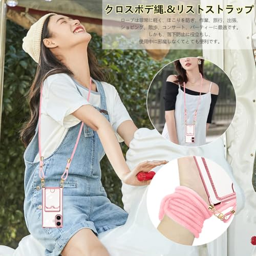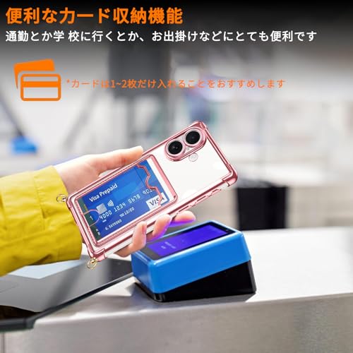 iPhone 17 ケース クリア ショルダー iphone17 カバー カード収納 アイフォン17 スマホケース 肩掛け 首かけ 斜めがけ 縄掛け ケース 透明 TPU 耐衝撃 薄型 軽量 カード入れ 財布型 スマホケース 調節可能な 落下防止 紛失防止 (ローズゴールド)